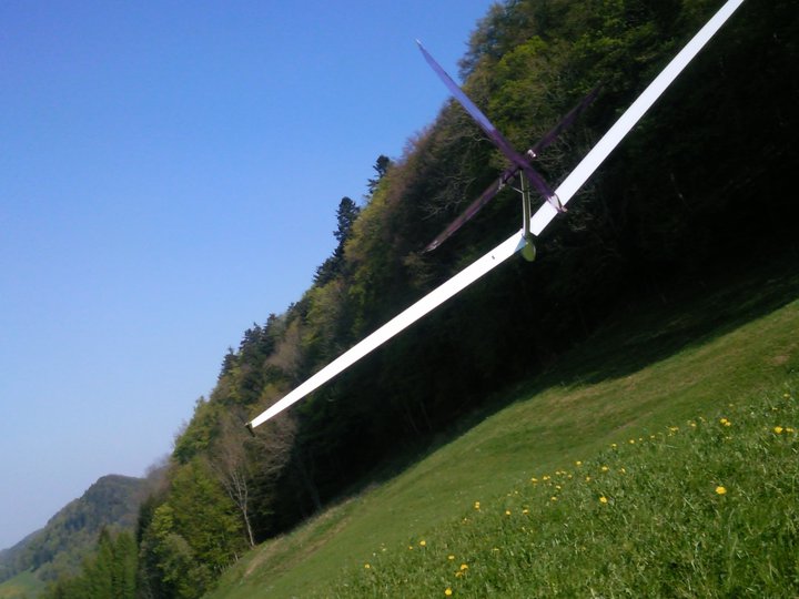 Vorgestern waren wir an unserem Haushang, dem Lindenberg. Dieter hat seine Minimoa erstmals dem Element übergeben – erfolgreich!