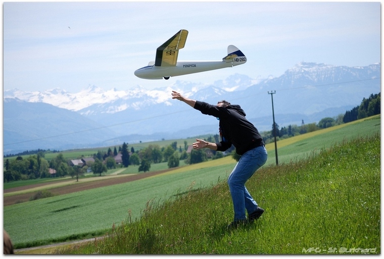 Vorgestern waren wir an unserem Haushang, dem Lindenberg. Dieter hat seine Minimoa erstmals dem Element übergeben – erfolgreich!