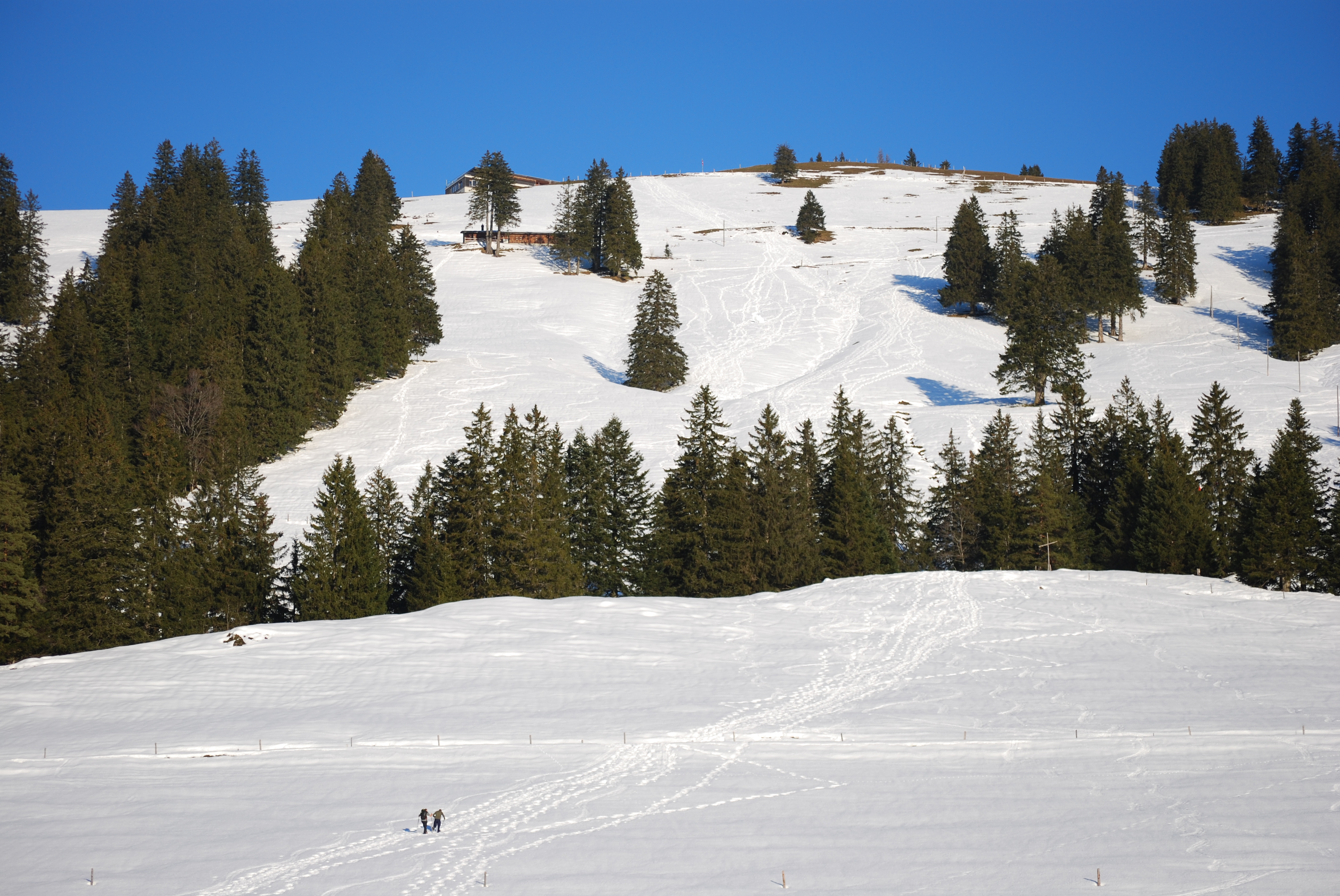 Fliegen ab und zu auf dem First; hat zeitweise einige Wandertouristen, aber das Bergrestaurant ist schön nah… 🙂